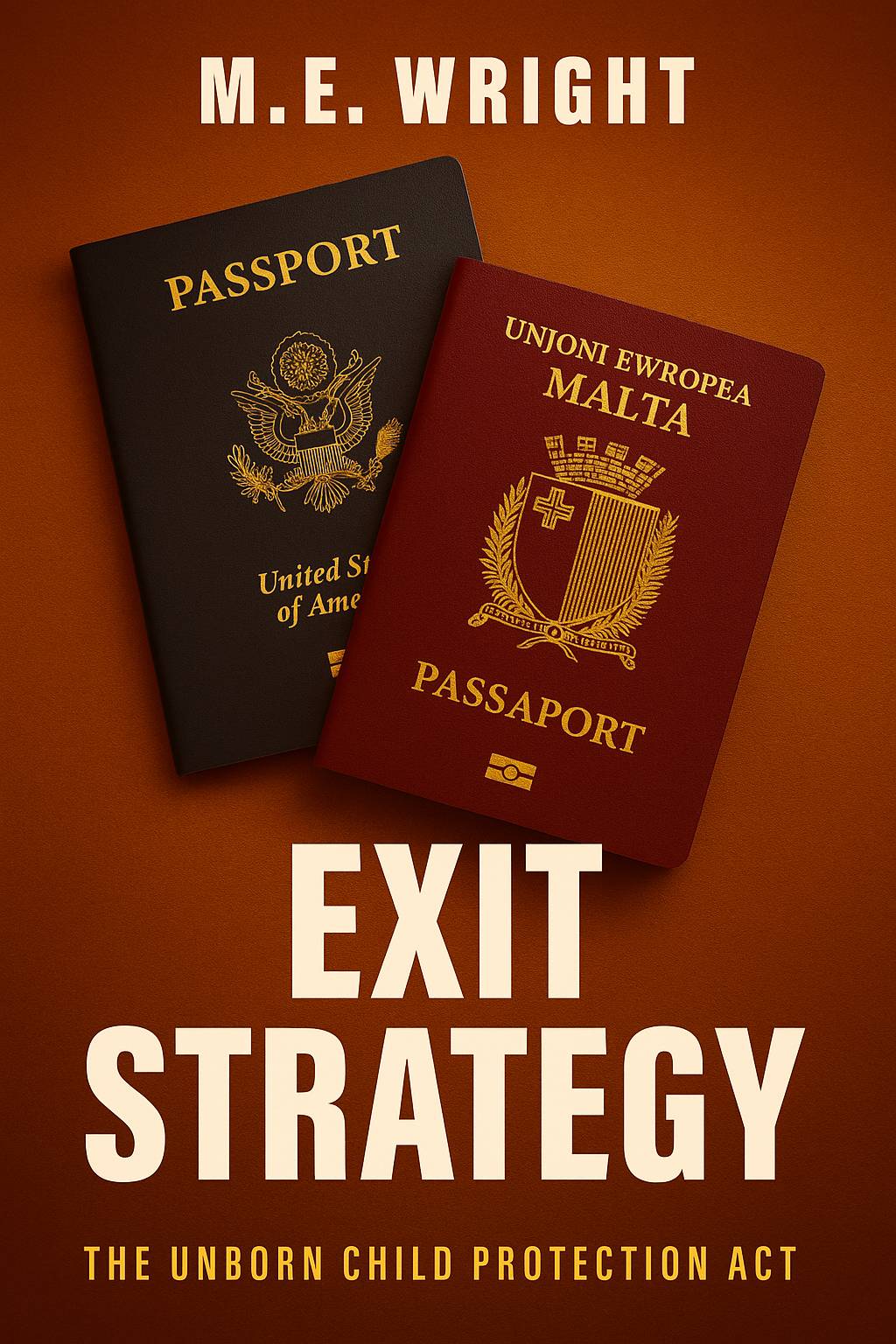 M.E. Wright March 30th Notes from the Accidental Dystopian Author ↓ Exit Strategy is with my editor. The manuscript is done. The story is told. Now comes the part that always trips me up: the cover. Here's the mockup I started with: The passports represent Mackenzie's purchased citizenships. The lifelines her parents carefully selected. The ability to leave the United States that wealth can buy and most women never will have. The colors are warm but unsettling. The typography is bold and...